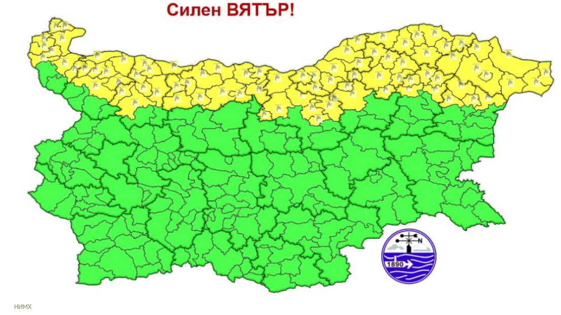 Жълт код за силен вятър в 12 области, температурите започват да падат