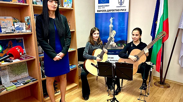 За доброто настроение на присъстващите се погрижиха Белослава Недялкова и Аделина Маринова от 6 клас на НУИ „Проф. В. Стоянов“, които изпълниха на акустична китара „Ода на радостта“ – официален химн на Европейския съюз и последната част от Деветата симфония на Бетовен.