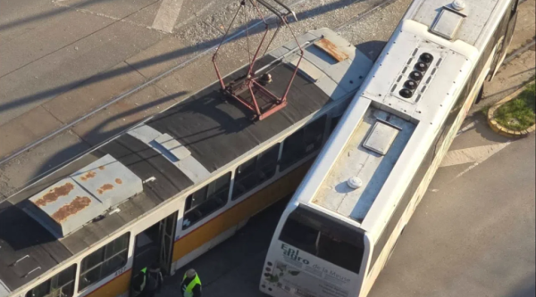 Сблъсък между автобус и трамвай в София