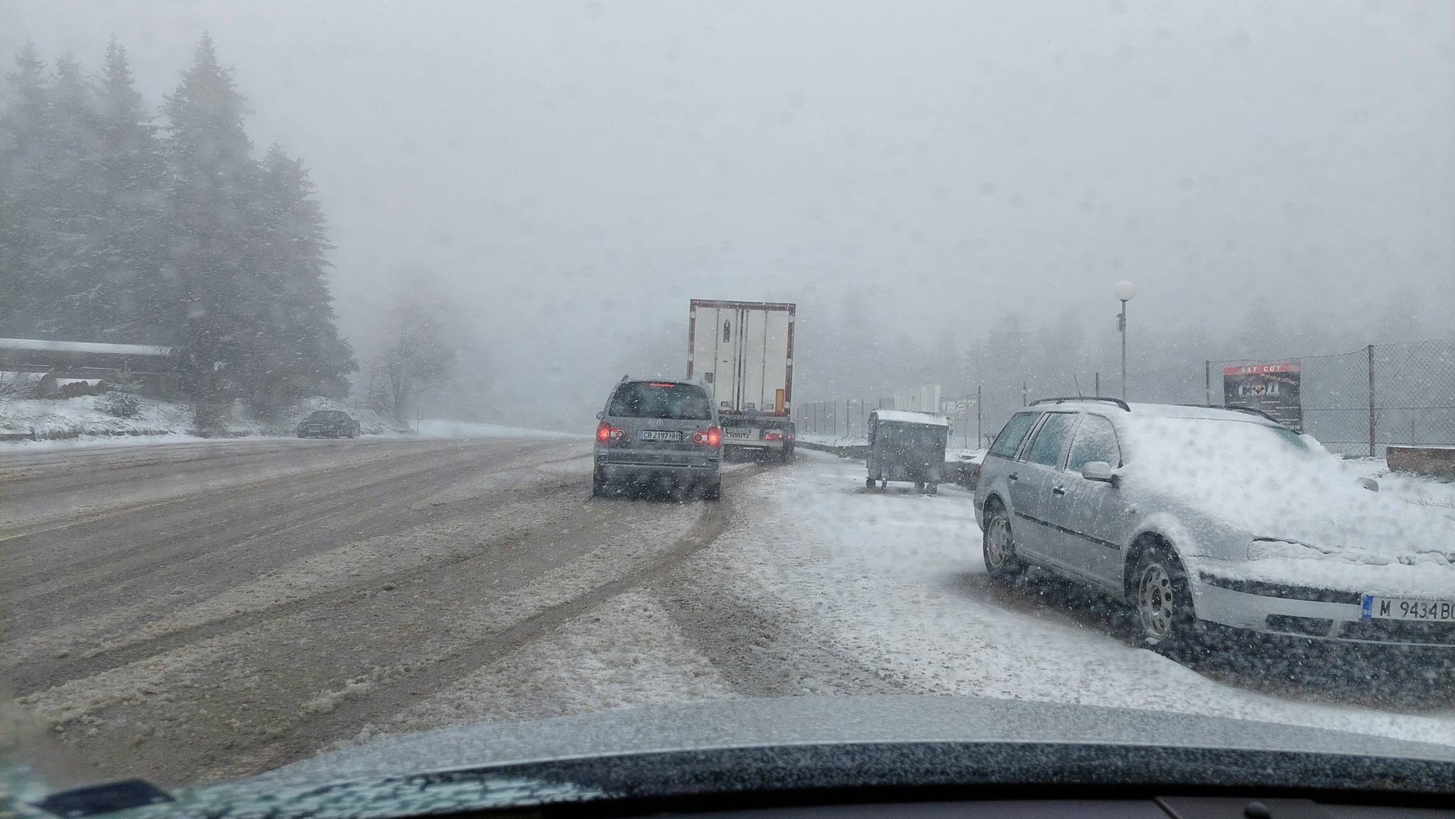 Снегорини са изпратени по пътя, а на места настилката е хлъзгава, с намалена видимост. Шофьорите, които са преминали към летни гуми, трябва да бъдат особено внимателни.
